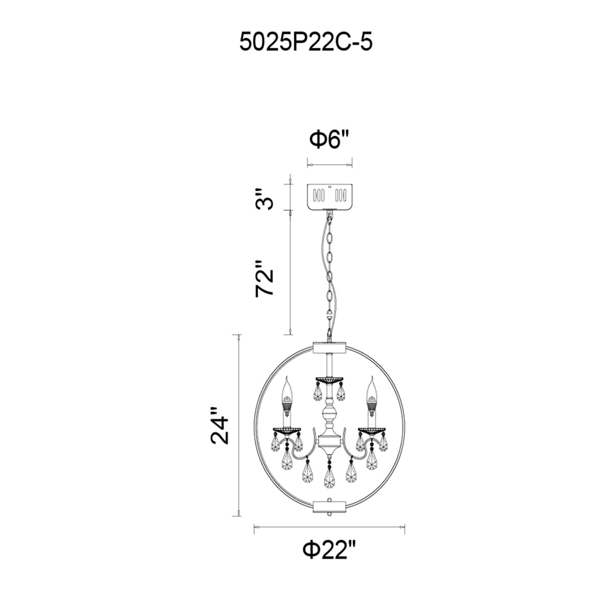 Abia 5 Light Chrome Chandelier