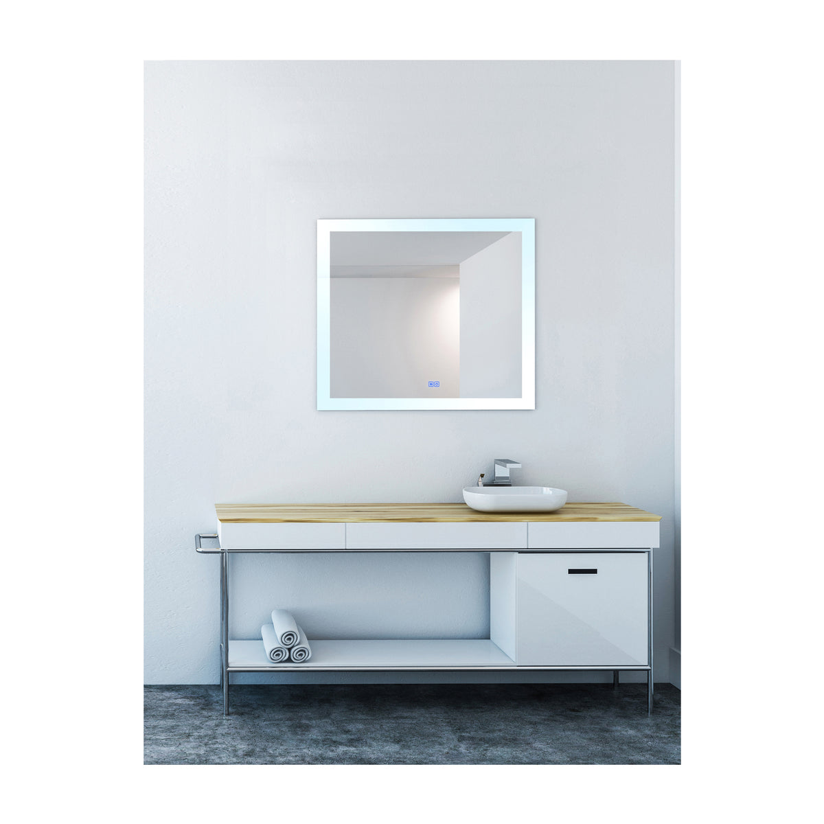 Abigail Rectangular 40x36in Matte White Integrated LED Mirror