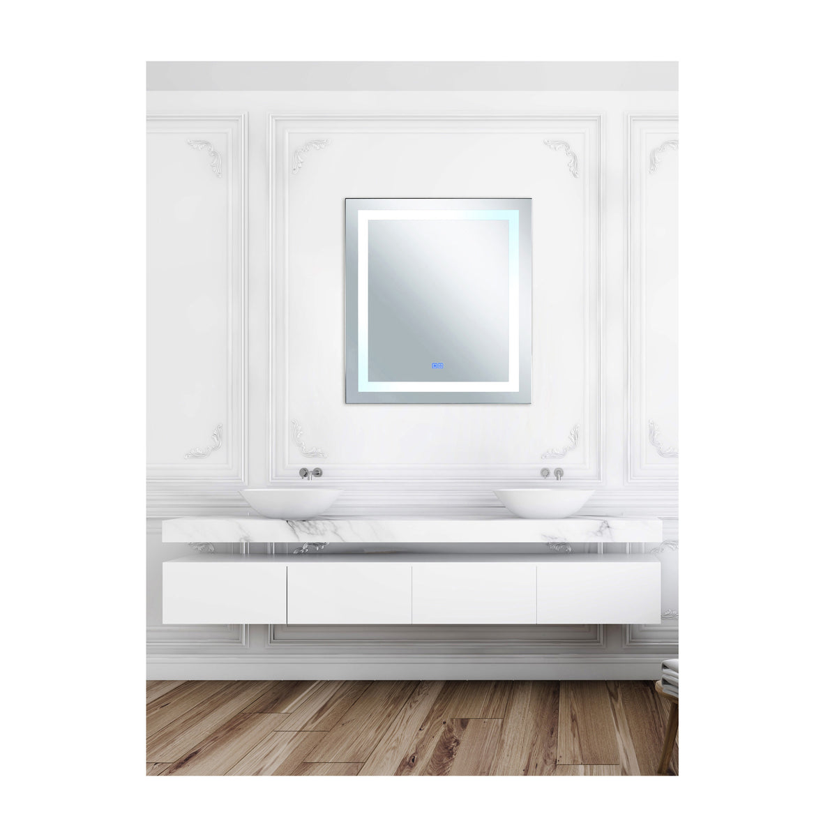 Abril Rectangular 40x36in Matte White Integrated LED Mirror