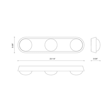 - Size W23-1/4" x H5-5/8" x E3-5/8"