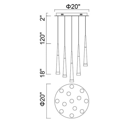Andes LED Multi Light Pendant With Satin Gold Finish