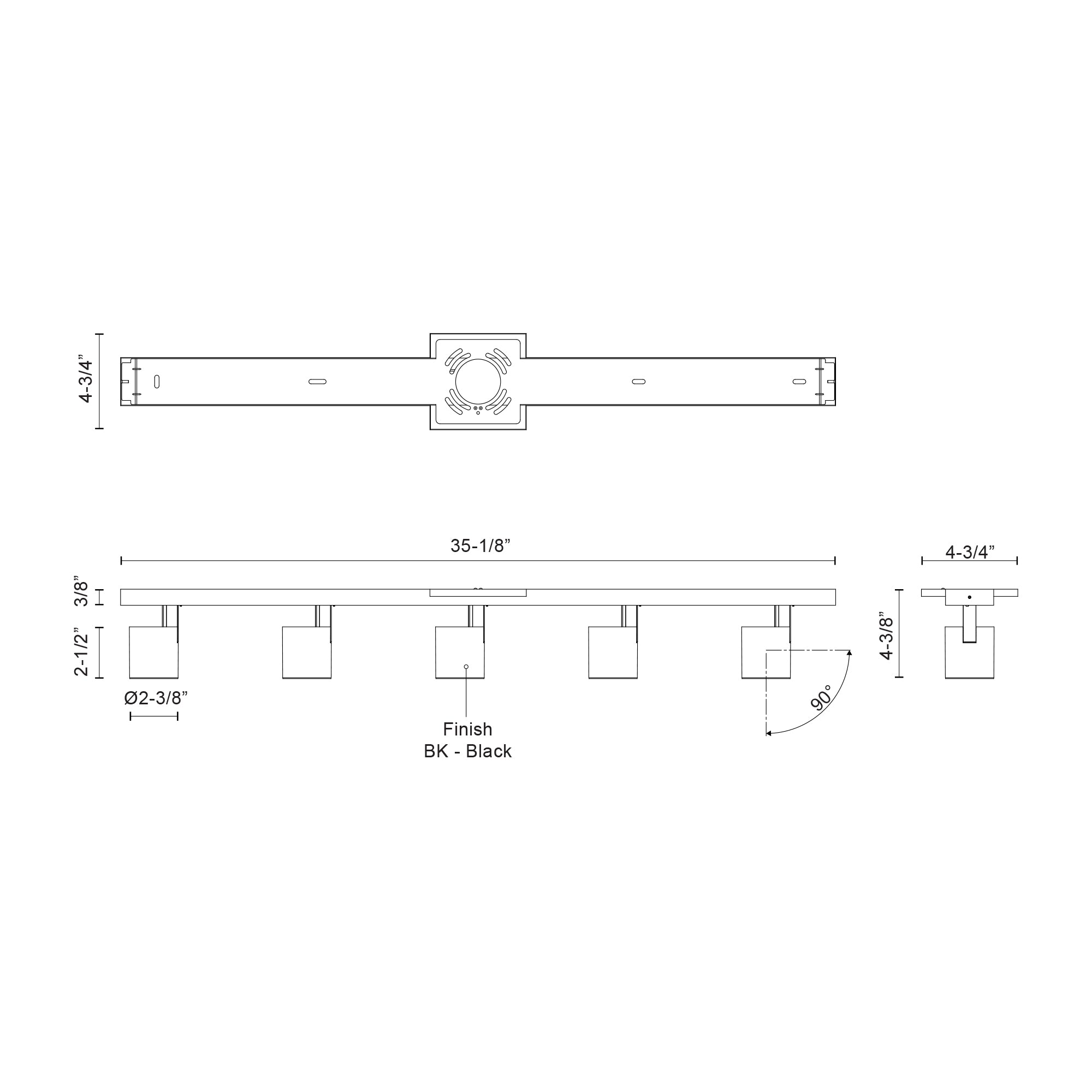 - Size L35-1/8" x W4-3/4" x H4-3/8"