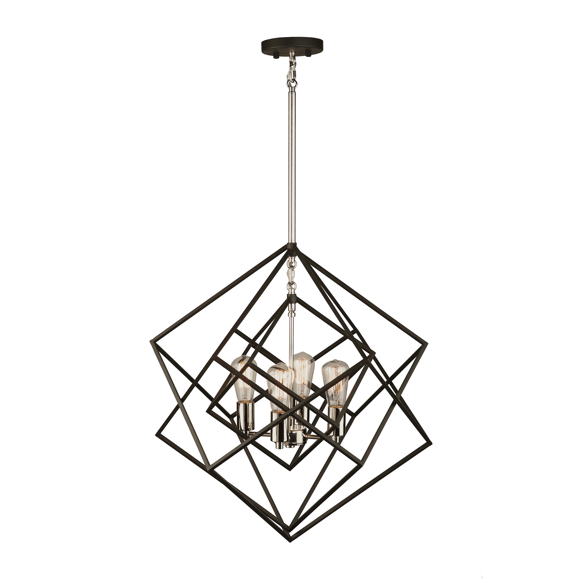 Stunning in design, this two tone multiple square chandelier from the "Artistry" collection is an instant classic. The interior has a polished nickel frame, while the exterior frame is a matte black finish. Multiple rods included with hangstraight for sloped ceilings. (Also available in black with harvest brown)