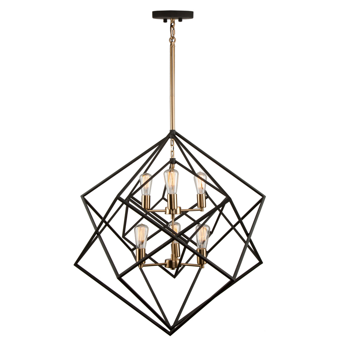 Stunning in design, this two tone multiple square chandelier from the "Artistry" collection is an instant classic. The interior has a satin brass frame, while the exterior frame is a matte black finish. Multiple rods included with hangstraight for sloped ceilings. (Larger sizes available)