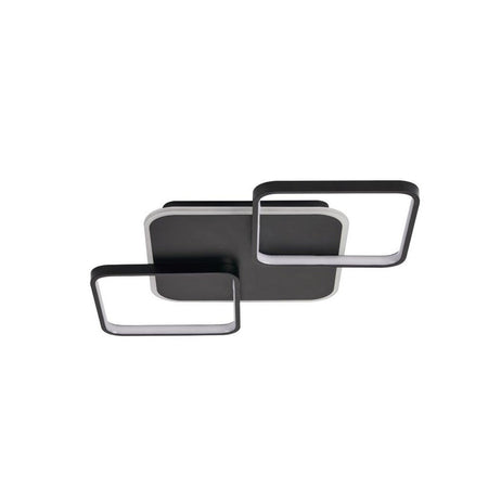 The Apex flush mount from Avista Lighting blends architectural structure with modern elegance. Its sleek black metal frame highlights two overlapping rectangular LED rings, creating a bold yet minimalist statement. Designed with integrated LED lighting, this fixture delivers consistent, energy-efficient illumination while maintaining a clean, low-profile silhouette ideal for spaces where form and function go hand in hand. Whether installed in an entryway, hallway, or modern living area, Apex brings a sculptural presence that elevates the ambiance. Its dimmable functionality allows you to customize the lighting to your mood or setting, while the sturdy metal construction ensures long-lasting durability. Perfect for contemporary interiors, the Apex flush mount combines innovative design with practical performance.