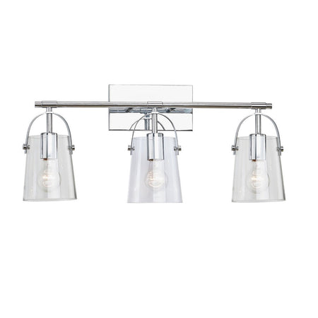 Experience the perfect blend of style and practicality with Avista's Arden Vanity Wall Light 3-Light. Designed to add a touch of sophistication to your space, this fixture features a stunning Chrome metal finish that effortlessly complements a wide range of interior styles. The three clear glass shades exude a sense of elegance while ensuring ample illumination for your vanity area or bathroom.