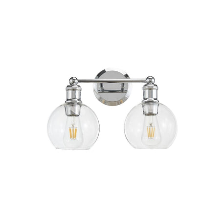 Enhance your bathroom’s elegance with the Ash 2-Light Vanity Wall Light from Avista Lighting. This contemporary fixture features a stylish chrome metal finish that complements a variety of bathroom decors. The clear glass globe shades provide bright and consistent lighting, perfect for illuminating your vanity area with clarity and style. Whether you're getting ready for the day or winding down at night, the Ash vanity light offers the ideal lighting solution.
