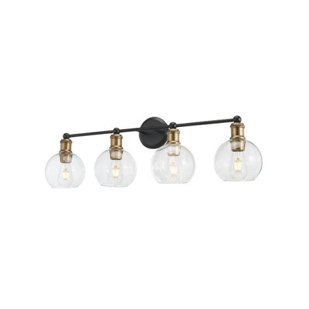 Transform your bathroom into a luxurious retreat with the Ash 4-Light Vanity Wall Light from Avista Lighting. This exquisite fixture features a sophisticated combination of black and aged brass finishes, adding a touch of elegance to your vanity area. The clear glass globe shades not only enhance the overall aesthetic but also provide bright, even lighting, making your daily routines more enjoyable and efficient.
