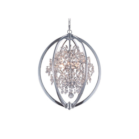 Elevate your decor with the Avista Lighting 7-Light Transitional Belair Chandelier, a contemporary masterpiece that fuses form and function with elegance. Encased in a chrome metal sphere cage, this chandelier boasts an internal array of clear crystals that scatter light to create a captivating display of brilliance. With its seven lights, it provides ample illumination for even the most spacious rooms, and the dimmable feature allows you to tailor the lighting to your desired ambiance.