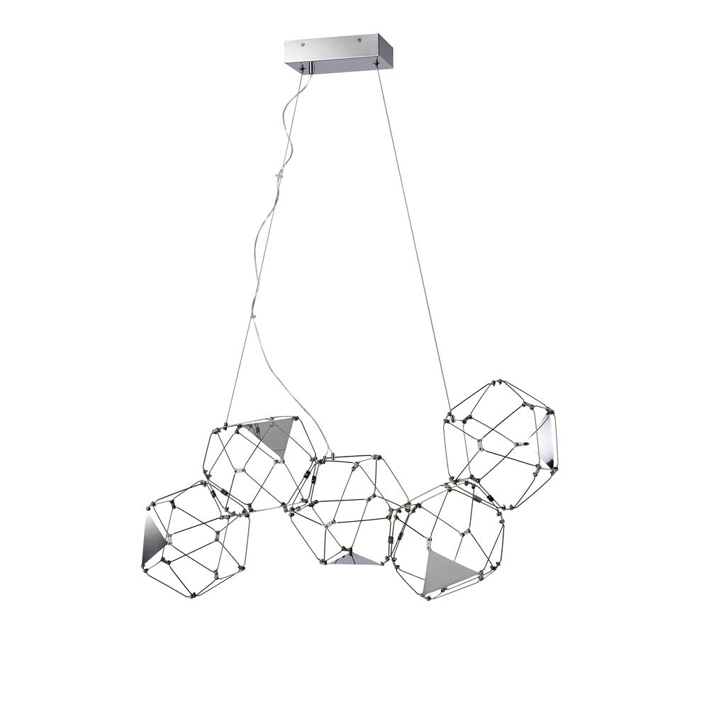 Elevate your living space with the stunning Cube Chandelier from Avista Lighting. Featuring 60 integrated LED lights and a striking chrome metal finish, this chandelier brings both modern elegance and functionality to your home. Its geometric design, composed of intricately crafted metal cubes, creates a captivating visual statement that enhances any contemporary interior. Whether placed above a dining table or in a spacious living room, the Cube Chandelier’s open structure and warm gold finish offer a perfect blend of sophistication and style.