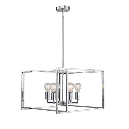 Introducing the Avista Lighting Korson 6-Light Pendant, a modern masterpiece that effortlessly marries style and functionality. This pendant light features an open Chrome metal square frame, adding a touch of contemporary elegance to your space. With six dimmable light bulbs, you have complete control over the ambiance, allowing you to set the perfect mood for any occasion.