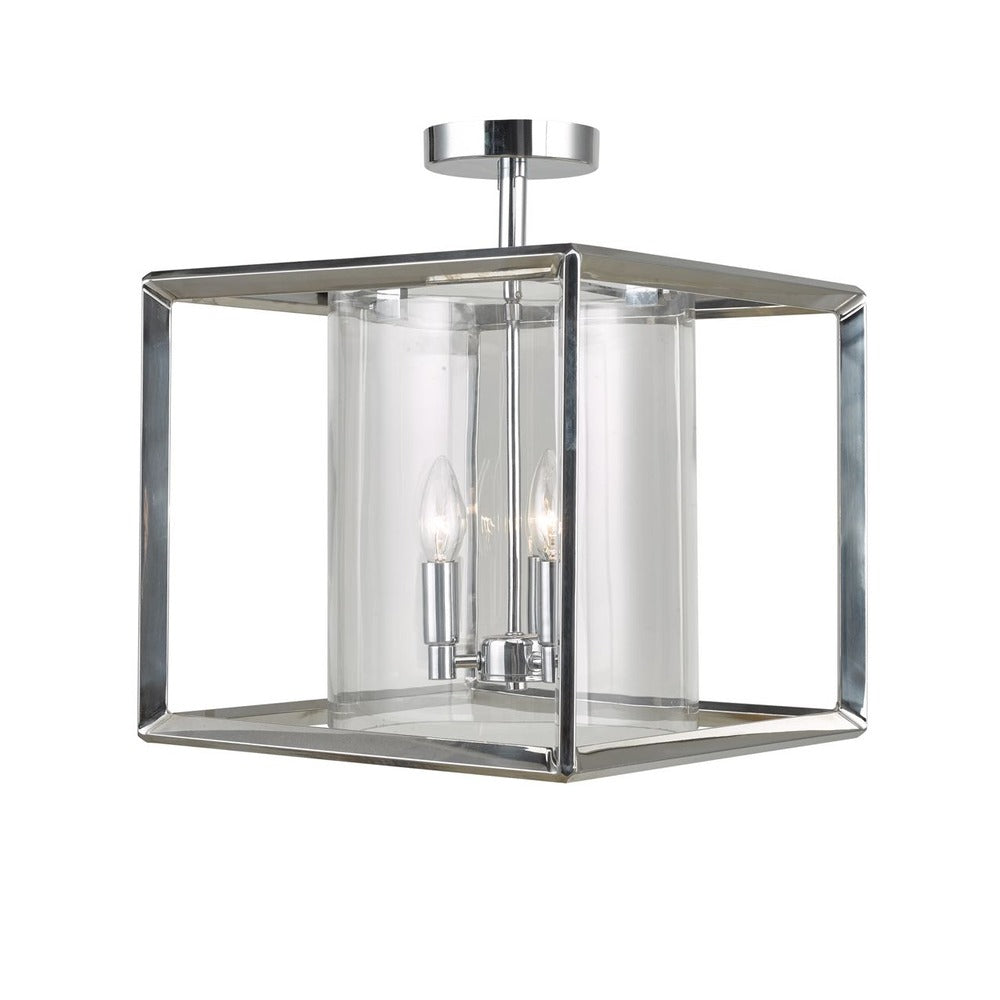 Introducing the Avista Lighting Metro 4-Light Chrome Semi-Flush Mount, a dazzling fusion of modern design and timeless elegance. This exquisite ceiling fixture showcases a sleek square open cage that encircles a singular clear glass cylinder, allowing light to dance and refract in captivating patterns. With four lights illuminating your space and the added convenience of dimmable functionality, you have the power to set the perfect ambiance for any occasion.