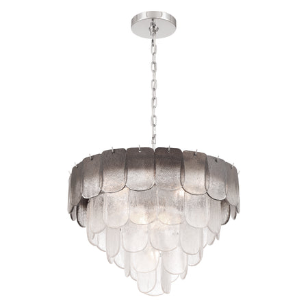 Bianca 12 Light Chandelier, Polished Nickel, Crystalline Smoke with Piastra Type Glassware