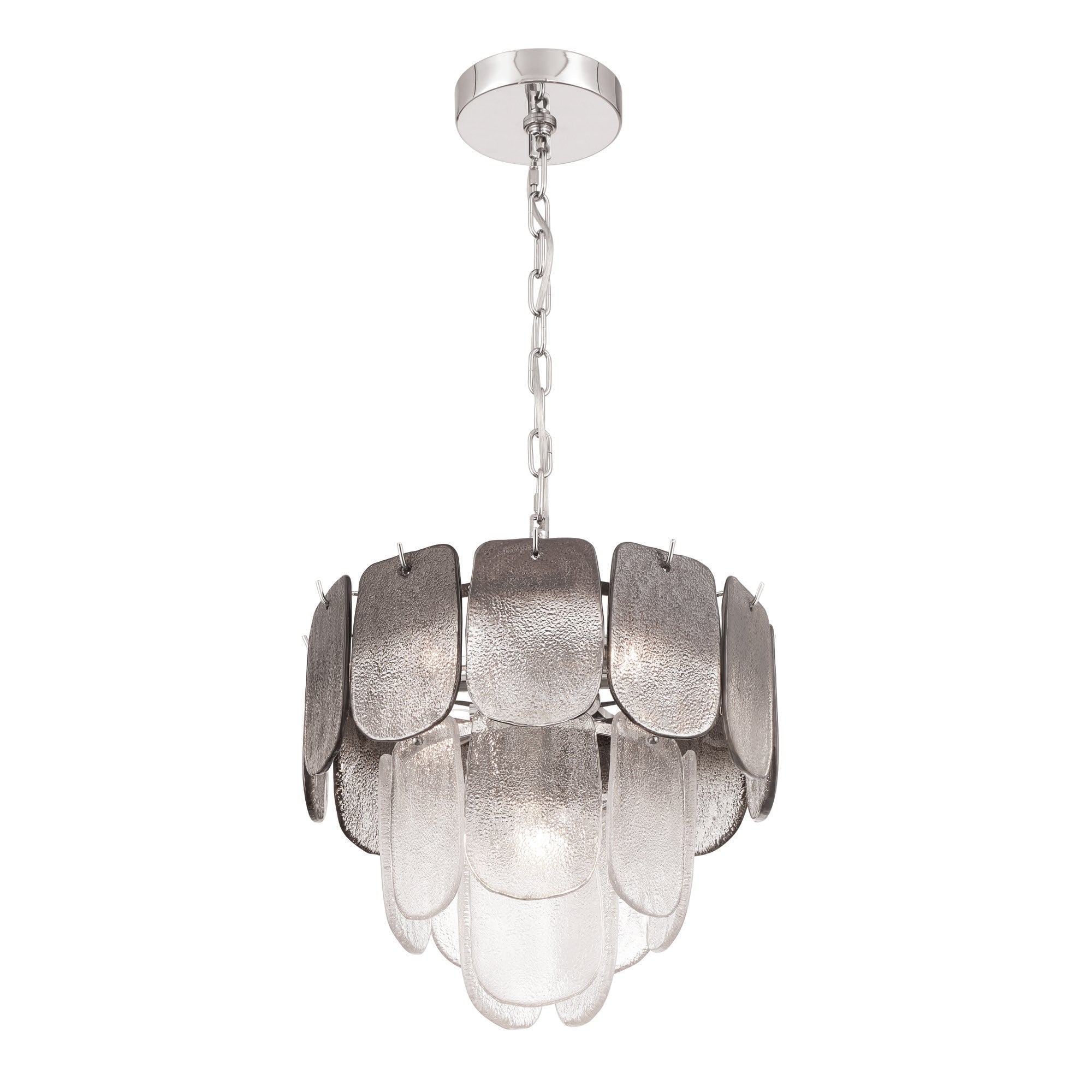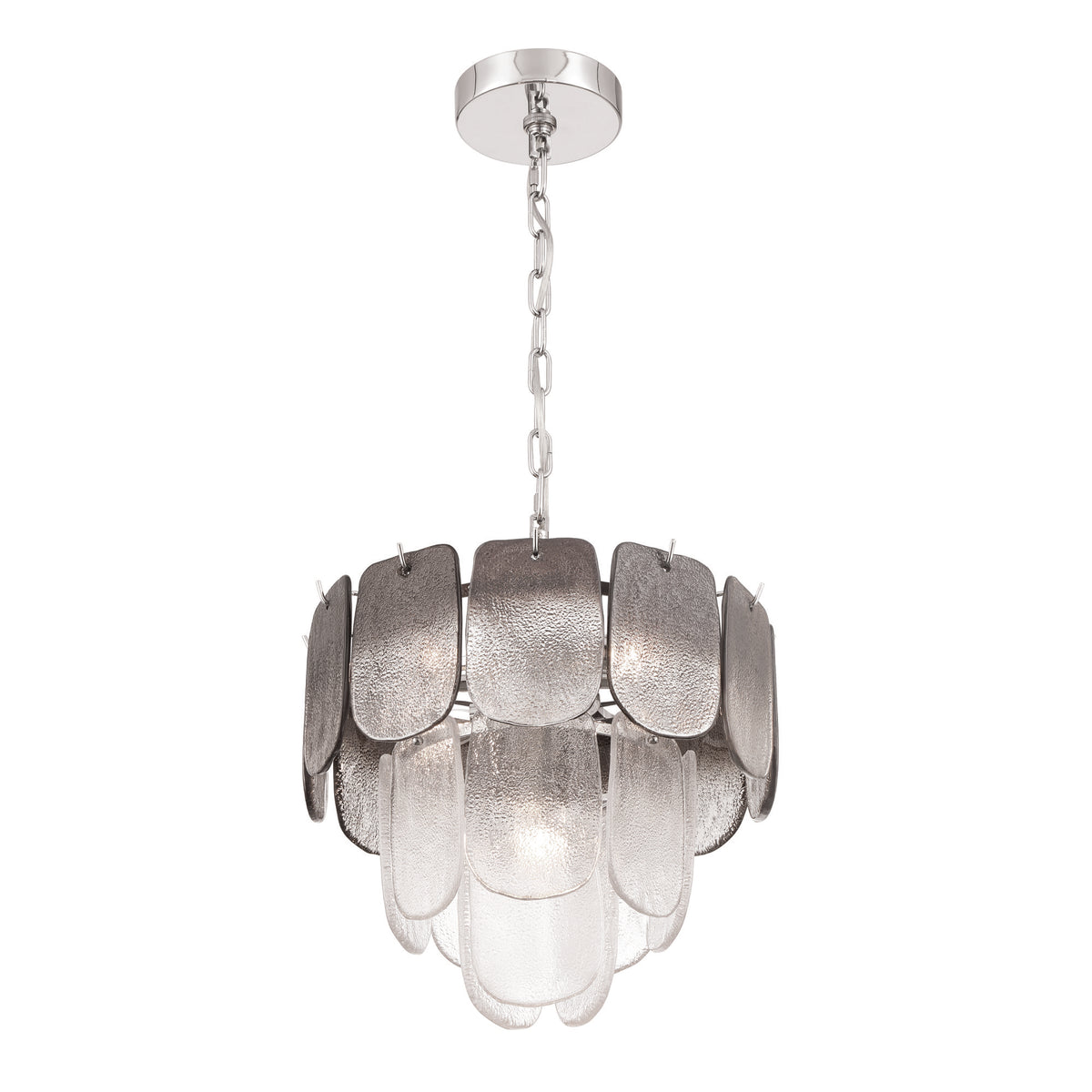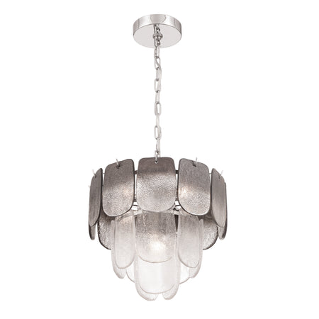 Bianca 5 Light Pendant, Polished Nickel, Crystalline Smoke with Piastra Type Glassware