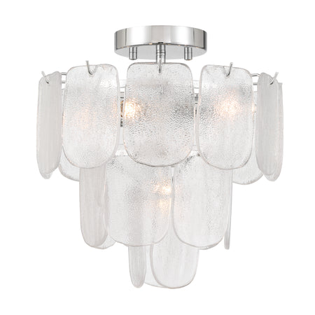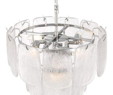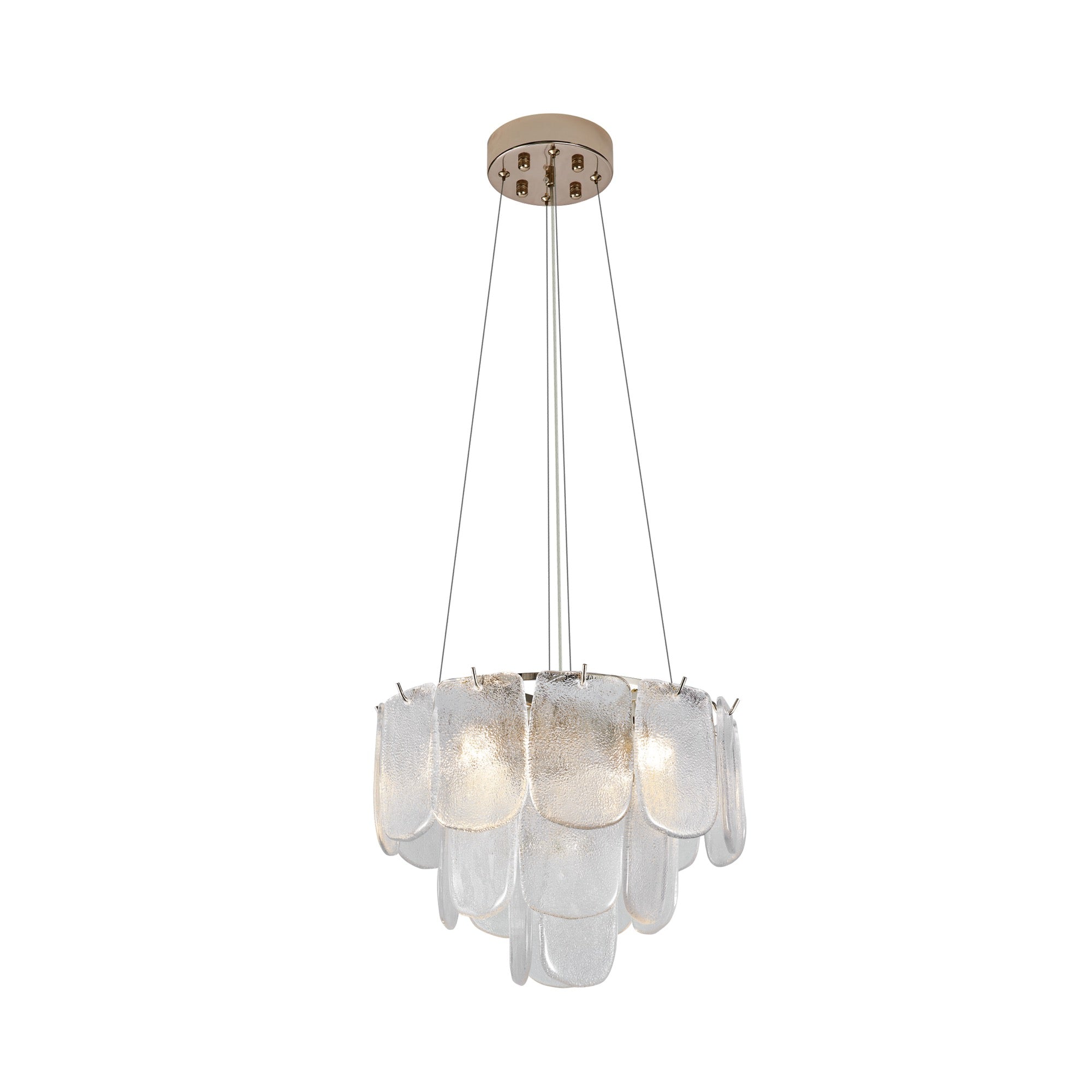 Bianca 5 Light Pendant, Polished Nickel, Crystalline with Piastra Type Glassware