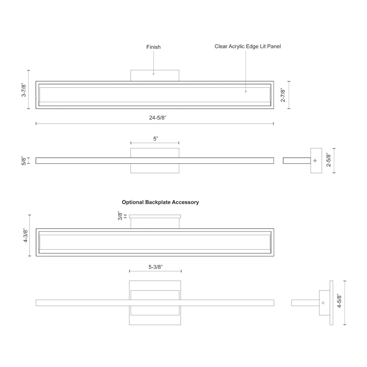 - Size W24-5/8" x H2-5/8" x E3-7/8"