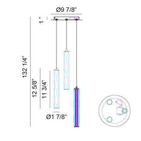 - Size Ø9 7/8" x 134 1/4"H Max.
