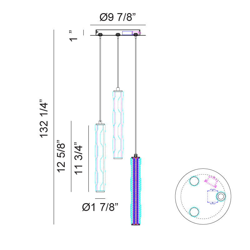 - Size Ø9 7/8" x 134 1/4"H Max.