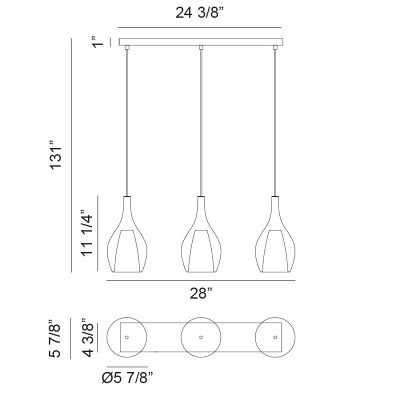 - Number of bulbs 3 x 60W Medium Base-E26 120V