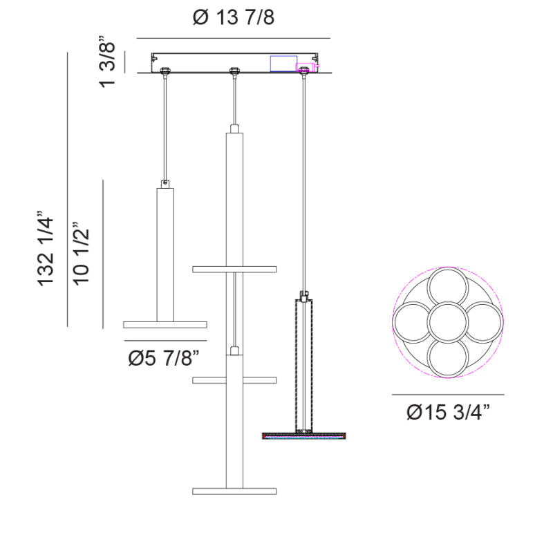 • Size Ø15 3/4" x 132 1/4"H Max.