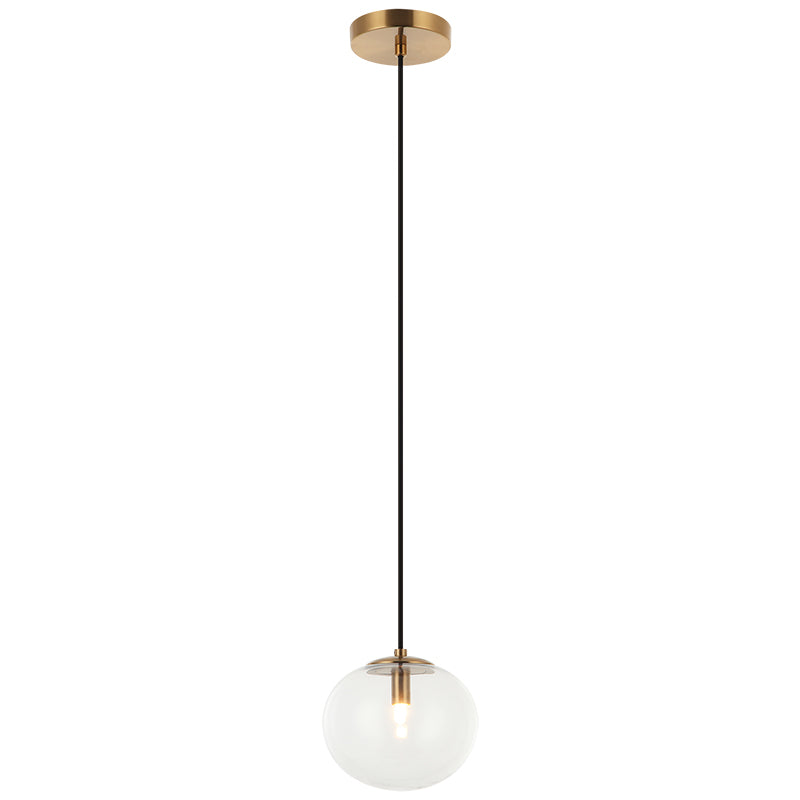 1 LT 6.9" DIAM "BULBUS" AGED GOLD/CEILING CLEAR GLASS PENDANT LED G9 LED 10W