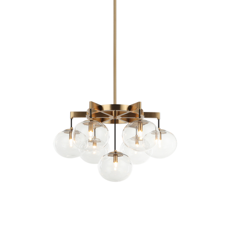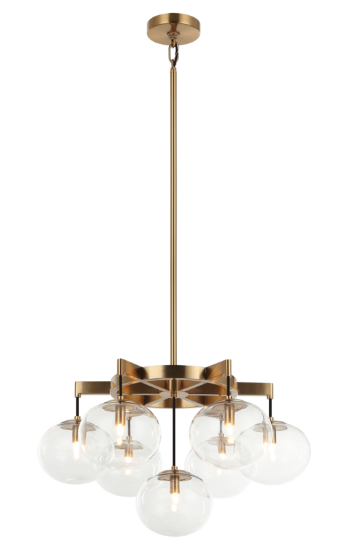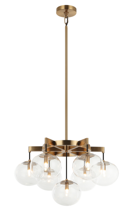 7 LT 24" DIAM "BULBUS" AGED GOLD/CEILING CLEAR GLASS CHANDELIER LED G9 LED 10W