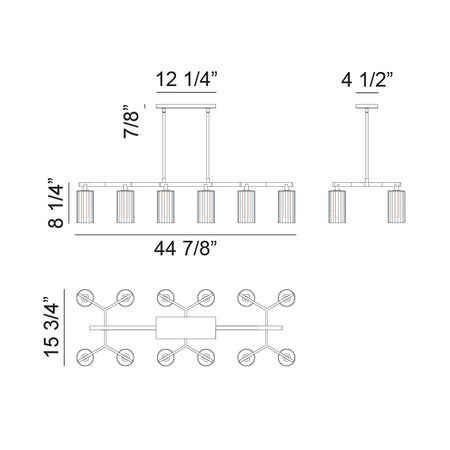 - Size 44 7/8"L x 15 3/4"W x 8 1/4"H