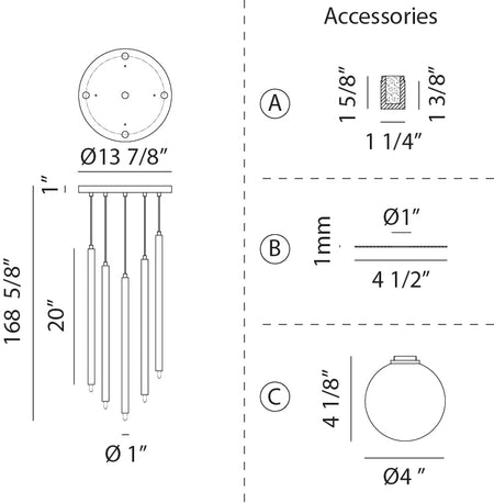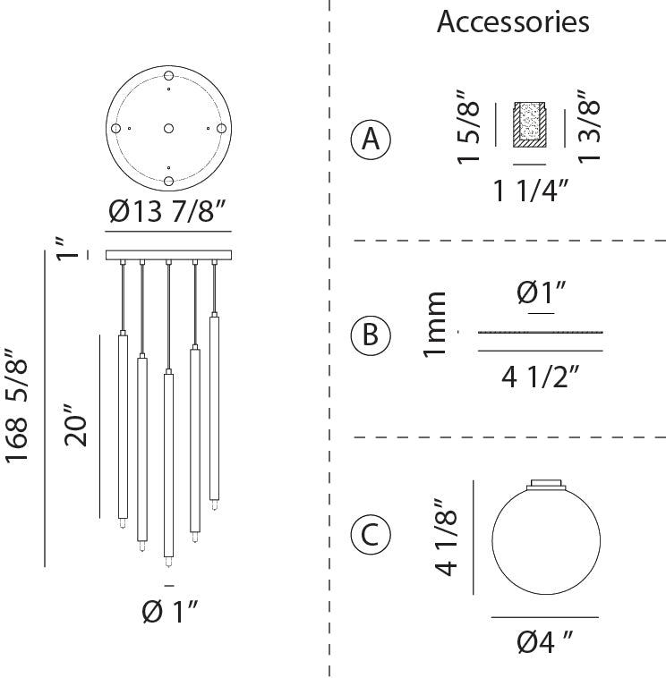 - Size Ø13 7/8" x 168 5/8"H Max.