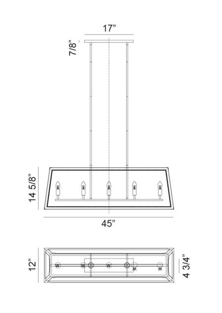 - Number of bulbs 5 x 60W Candelabra Base-E12 120V