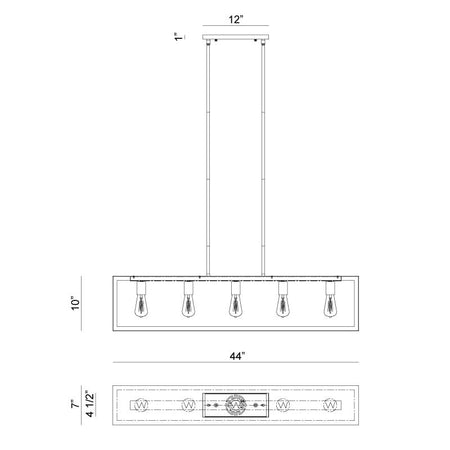 - Number of bulbs 5 x 60W Medium Base-E26 120V