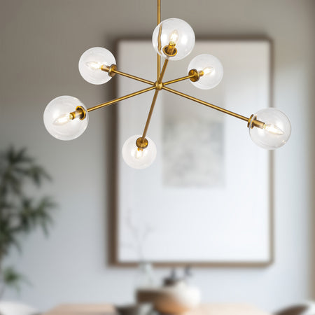 Cassia 40-in Aged Brass/Clear Glass 6 Lights Chandelier