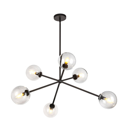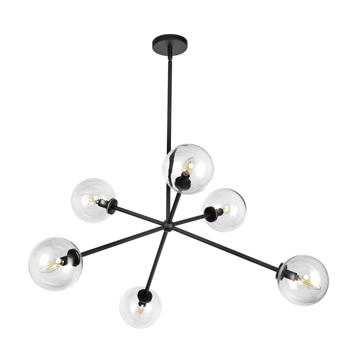 Cassia 40-in Matte Black/Clear Glass 6 Lights Chandelier