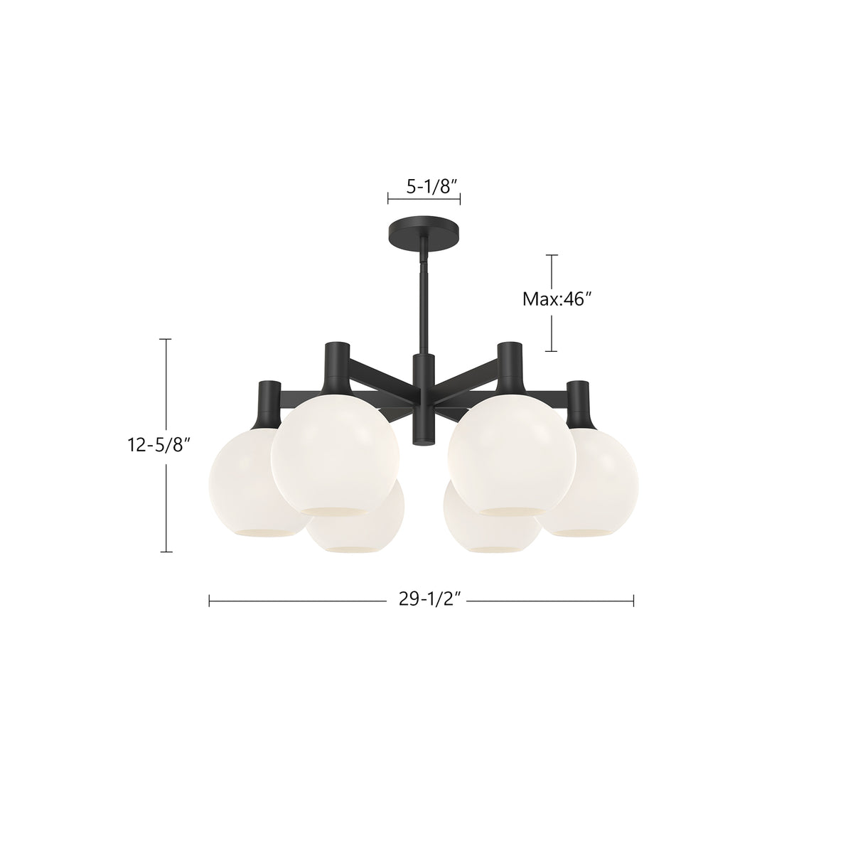Castilla 29-in Matte Black/Opal Matte Glass 6 Lights Chandeliers