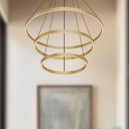 Cerchio 32-in Brushed Gold LED Chandeliers