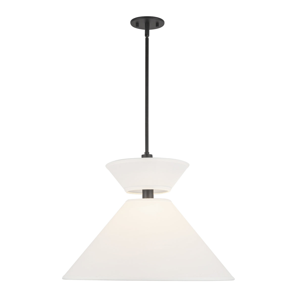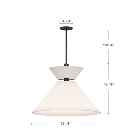 Chapelle 22-in Matte Black/White Linen 1 Light Pendant