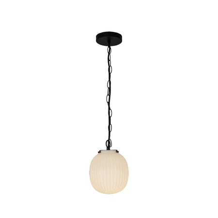 Cherise 7-in Matte Black/Glossy Ribbed Opal Glass Socket Pendant