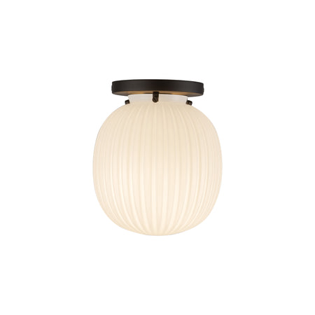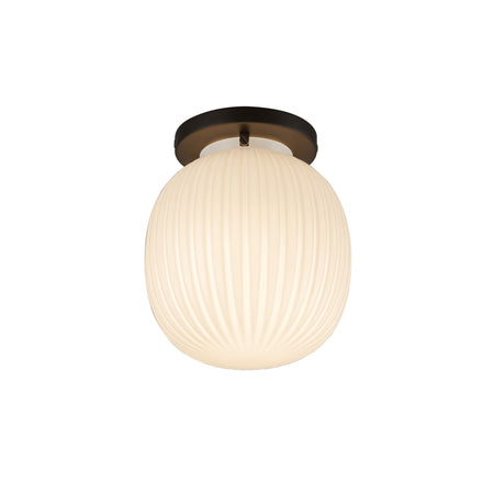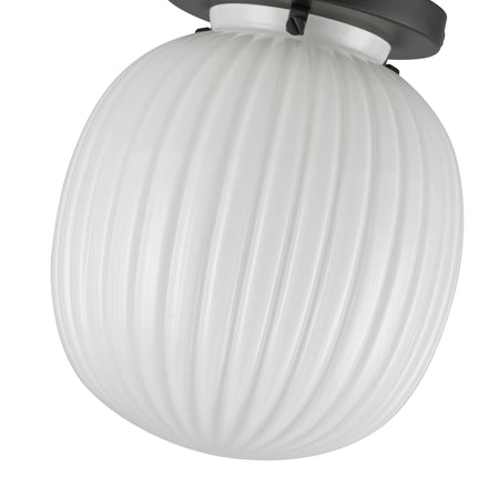 Cherise 7-in Matte Black/Glossy Ribbed Opal Glass Socket Semi-Flush Mount