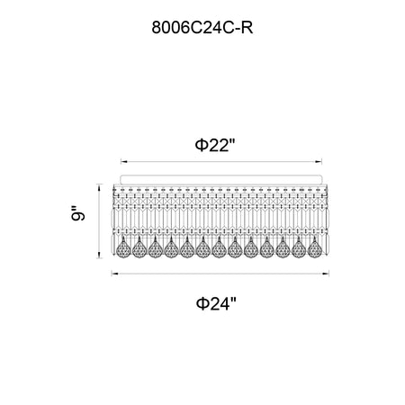 Colosseum 10 Light 24in Chrome Flush Mount with Crystals