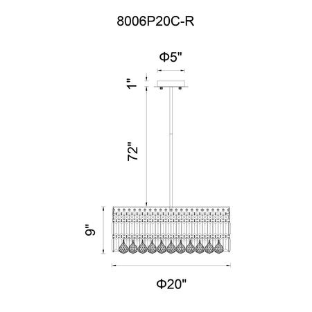 Colosseum 8 Light 20in Chrome Down Chandelier with Crystals