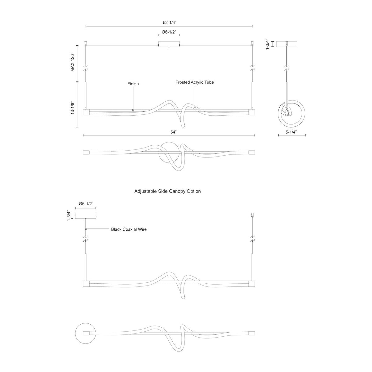 - Size L54" x W5-1/4" x H13-1/8"