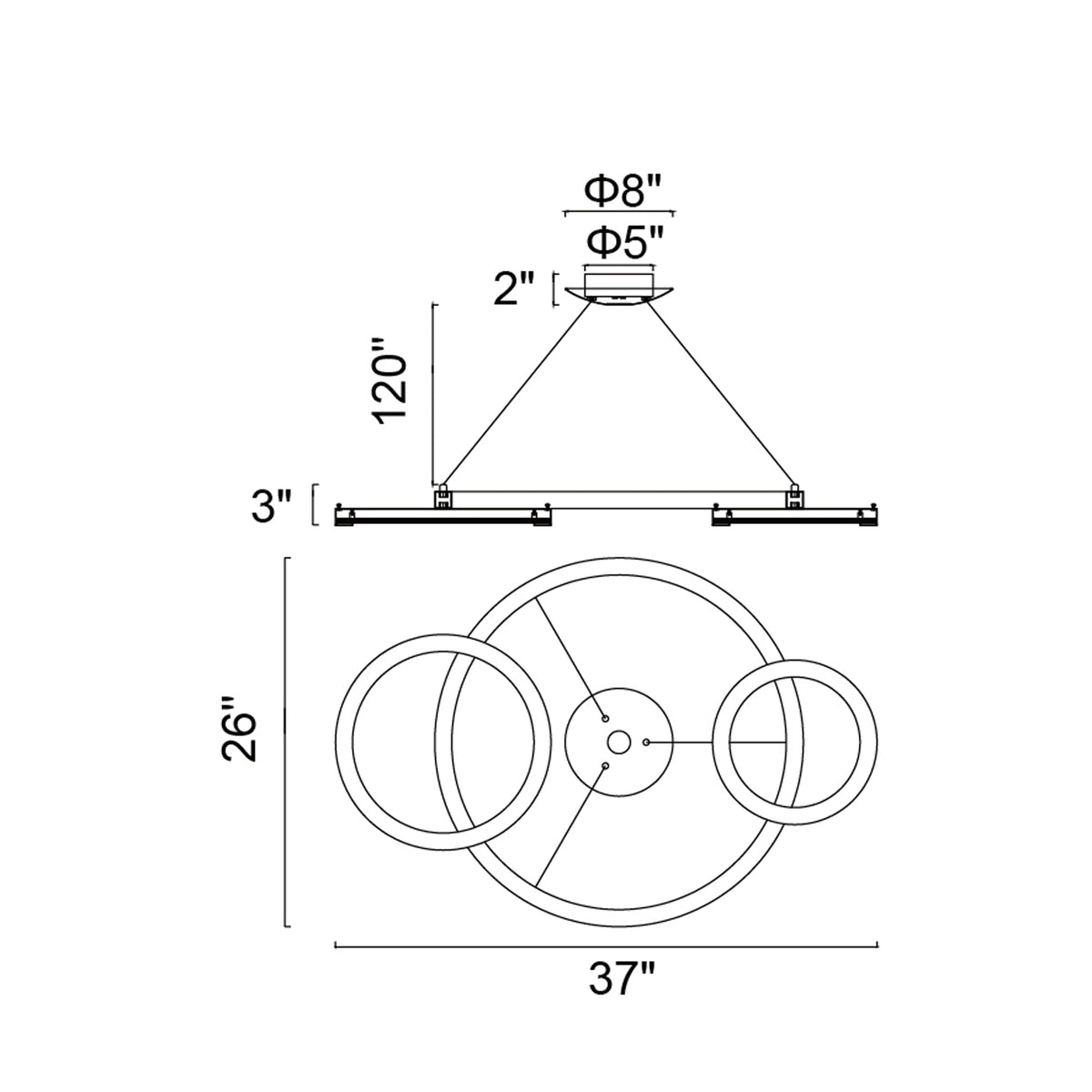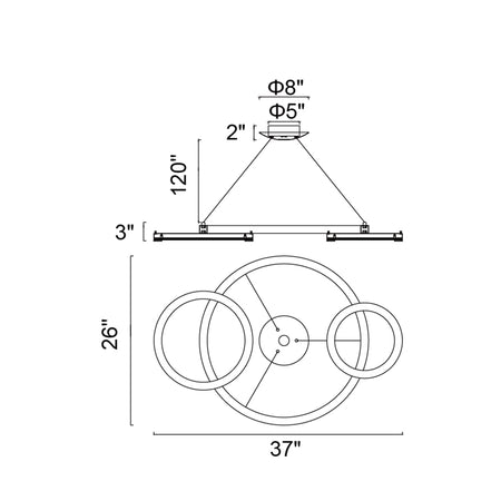 Deux Lunes Integrated LED 37in Sun Gold & Black Chandelier