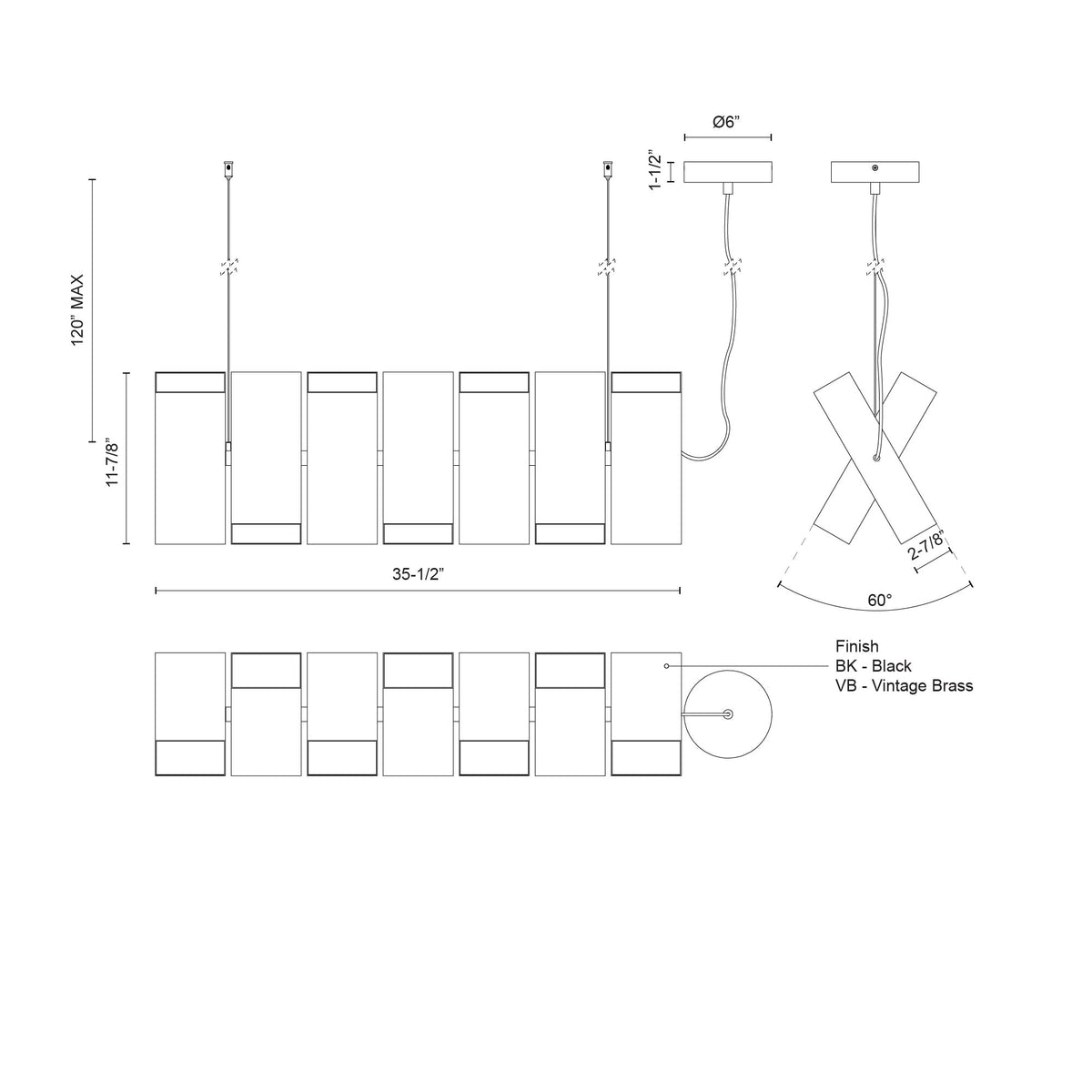 - Size L35-1/2" x W2-7/8" x H11-7/8"