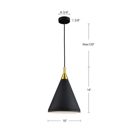 Dorothy 10-in Black With Gold Detail 1 Light Pendant