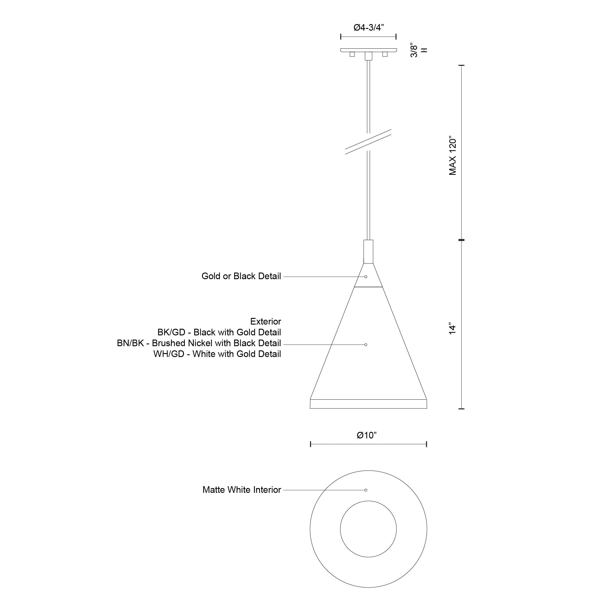 Dorothy 10-in White With Gold Detail 1 Light Pendant