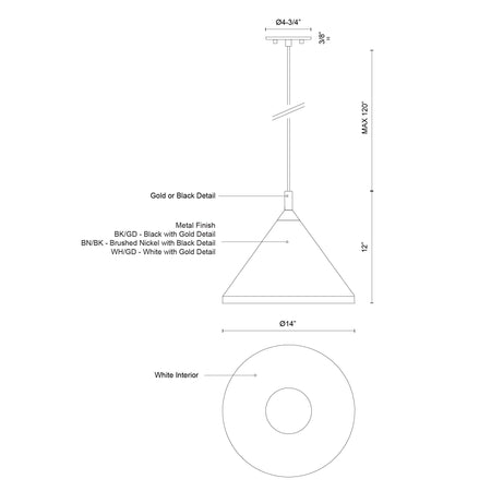 Dorothy 14-in White With Gold Detail 1 Light Pendant