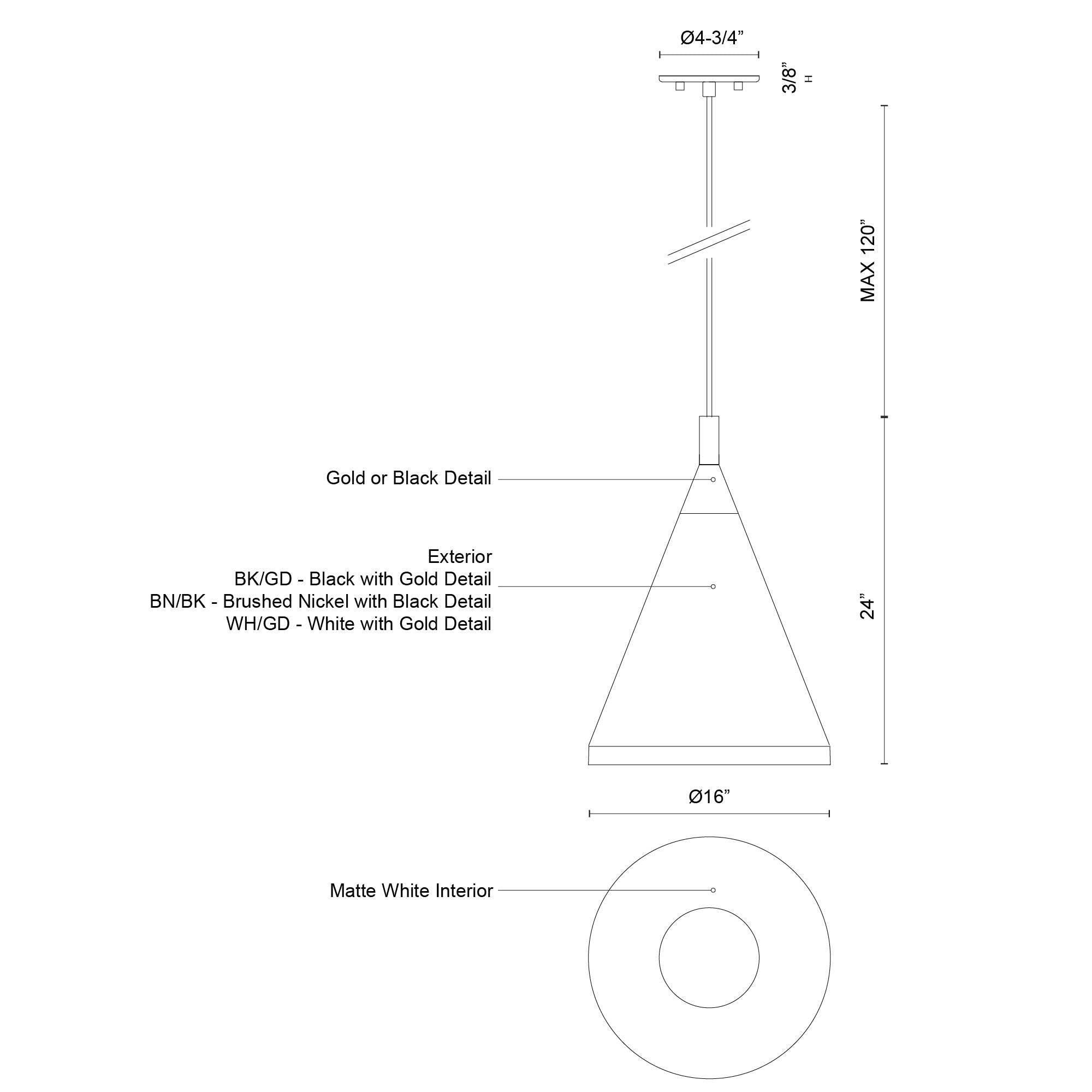 Dorothy 16-in White With Gold Detail 1 Light Pendant