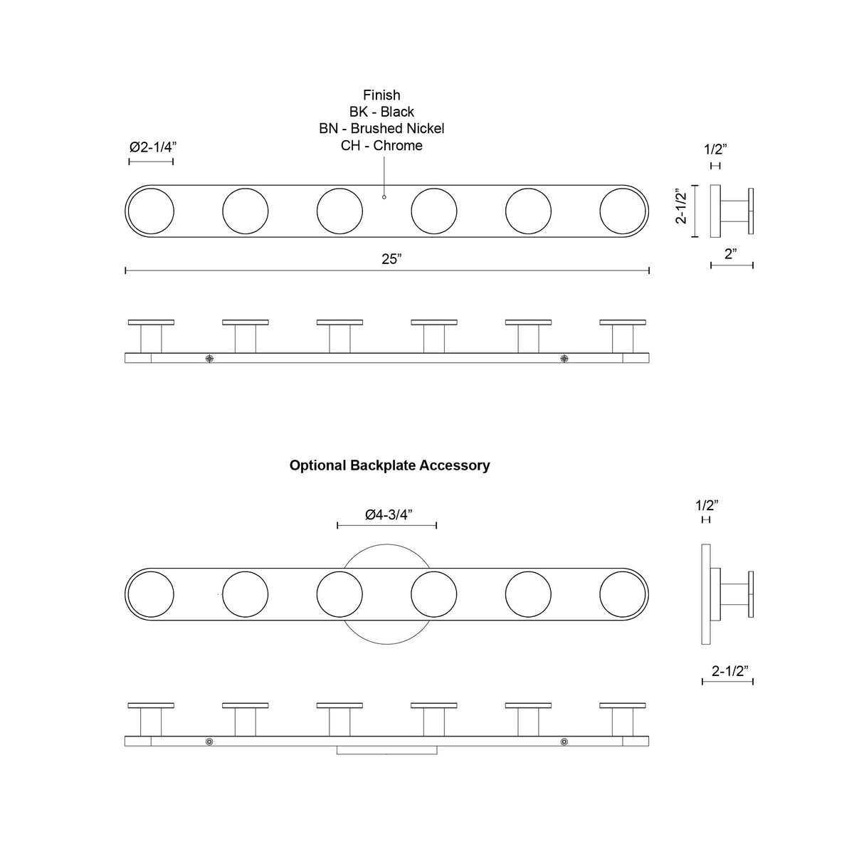 - Size W25" x H2-1/2" x E2"