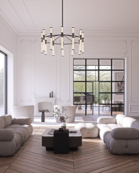 Edwin 38-in Urban Bronze/Frosted Ribbed Glass LED Chandeliers