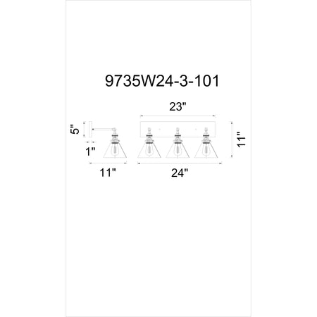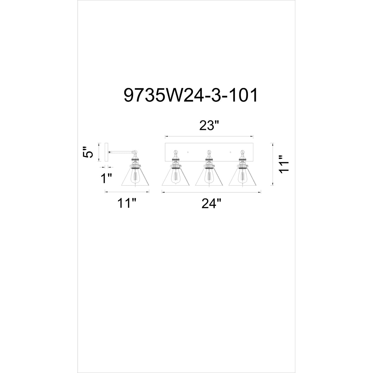Eustis 3 Light 24in Black & Gold Wall Sconce