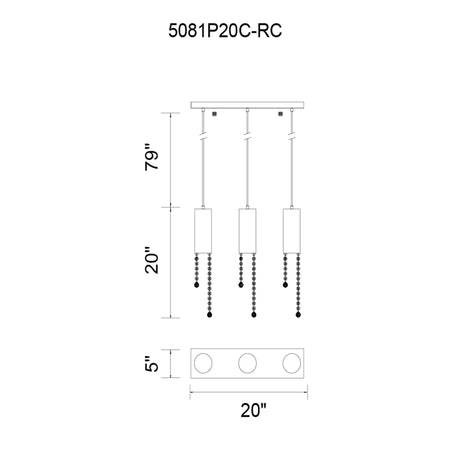 Extended 3 Light Multi Light Pendant With Chrome Finish